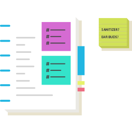 Jot down flight numbers, takeoff and delivery times and other pertinent information for each team member on a lined Post-it® Note. For an extra touch, remind them of onboard extras that they can't do without – like hand sanitizer and ear buds.