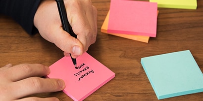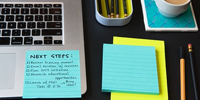 After ranking and additional discussion with the team, review the top three or four groups — these are now your top priorities for addressing the focus topic you started with! To take the benefits of the affinity process beyond the meeting room, have each team member write one or more actionable items down on a Post-it® Super Sticky Lined Note 4 in. x 4 in. to put in their planner and take to their desk. Keeping the note front and center will help keep the affinity process in mind, and the lines on the notes encourage easy list-making should more ideas spring up.