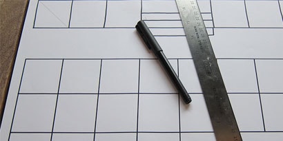 The first step is to make a scale drawing of the area you're going to plant in. It may be a simple square or rectangle, but you may also need to sketch in curves or odd shapes, if you're planting in raised beds or around buildings and structures. Start with a simple grid system that will fit on the sheet of paper you're using (a one foot to one inch scale often works well, unless you're working with very large beds – whatever your space, find a scale that works for you). Once you've got your grid laid out, adding a square or rectangular bed is simple. If you're working with a curved bed, sketch out a square or rectangle that can accommodate the whole shape, then use the gridlines to help you draw in the curves – a simple diagonal line though the center of one or more squares will act as a good guideline for any curve you need to draw.