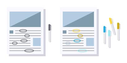 Print out two copies of a full-page magazine or newspaper article. Have a friend circle a handful of random words on both copies — but use color markers for one copy and black marker for the other. Scan your eyes over the copy with the emphasized information in black. Now do the same for the copy with color. Was it easier to locate the colored circles?