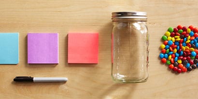Ask your students to estimate how many pieces are contained inside the jar. Have them write their guess on a Post-it® Note.