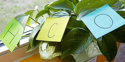Next, have your students affix the Post-it® Super Sticky Note containing the appropriate rule on different objects around the school or in the classroom. For instance, the water in a fish tank would be marked with a two H’s and an O. This will help them recognize the simple patterns of which basic elements are contained in all the everyday objects around them.