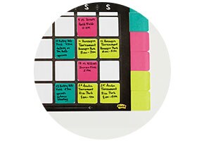 Sometimes the most helpful methods for dealing with to-do lists are the simplest. Putting your to-do list on your calendar means that you’ll see everything you need to do the moment you open your schedule for the day. Simply take each item on your to-do list, estimate how long it’ll take to get done and write it directly on your Post-it® Weekly Planner. You can also add Post-it® Arrow Flags to highlight the most important tasks for the day or to color-code your tasks by subject, client or category. When your calendar’s got everything you need to do, you don’t have to worry about forgetting or missing something, and your day will be a lot less stressful.