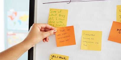 Next, using a different colored set of Post-it® Notes, encourage your students to respond to each other's ideas and add to the collection on the sheet.