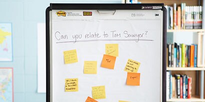 Stick individual sheets from a Post-it® Easel Pad on the walls. Pose a question or introduce an idea about the novel on each sheet.