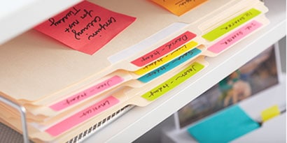 Ready to set up a filing system that works for you? Get started using Post-it®Super Sticky Notes, Post-it®Flags and Post-it® Tabs.