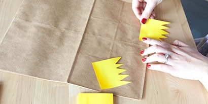 Cut two Post-it® Notes in a zig-zag pattern and attach them at the bottom of the bag as spiky little feet