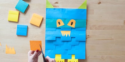 • 2. Cut two Post-it® Notes in a zig-zag pattern and attach them at the bottom of the bag as spiky little feet.