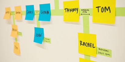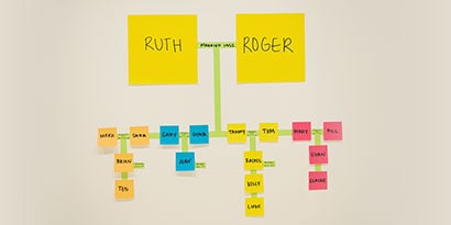 Then, identify the names of the next generations, writing each name on a Post-it® Super Sticky Note and adding it to the wall. Use Post-it® Full Adhesive Rolls to write down birthdates, marriages or other information. Once the family tree is complete, don't forget to capture a photo of it before you take it down!