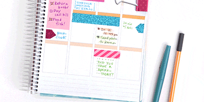 When you take the time to make your planner truly yours, you’re taking the time to treat yourself to inspiration every single day. With the right supplies, you can stick and re-stick tasks and goals over and over, making your planner a versatile touchstone that moves with you throughout the week. By making it beautiful, you’ll be treating yourself to a moment of beauty whenever you open the cover – and that’s a moment every one of us needs.