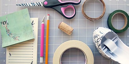 Post-it® Lined Notes, Scotch® Masking Tape, Post-it® Notes, green floral tape, wire, pencil, cork, scissors (and or utility knife)