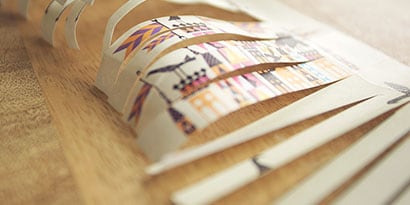 Pick out 6 sheets of your favorite list pad design, and cut equally spaced slits from the top of the ruled line all the way through the bottom.