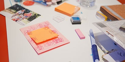 Post-it® Notes are perfect for creating a blank space with a stamped edge. Just place a Post-it® Note down to protect the area you want to leave blank, stamp all around the edges, and remove when you’re done.