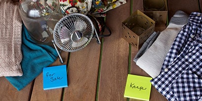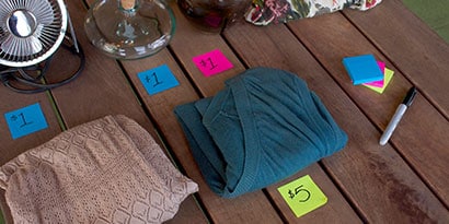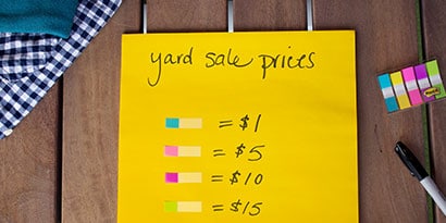 The first step is to find everything you can sell. Recruit all members of the household to go through their possessions and designate what’s eligible for the sale. Give each family member a pad of Post-it® Super Sticky Notes, each in a different color, and have them put a note on any item they might want to sell. Then do a walkthrough and decide what makes the cut – and what should go straight to the garbage, instead.