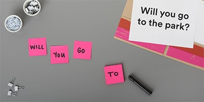 Select the sentence or sentences that you’ll be working through with students. Since the object of the lesson is about word order, challenging vocabulary may be unnecessarily distracting. Write out each word in the sentence on an individual Post-it® Note.