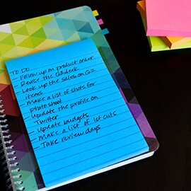 As we become more entrenched in working at home, it’s important to make sure you track your tasks and stay on top of your day. By jotting things down on Post-it® Super Sticky List Notes 4 in. X 6 in., it will help you manage your day and prioritize your tasks, while the 2X the sticking power lets you keep them front and center of where you’re sure to see it. So, while no one is hovering over your shoulder to keep you on task, Post-it® Super Sticky List Notes 4 in. X 6 in. are an easy way to make your workday work for you while ensuring your up-to-date as your workday evolves.