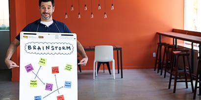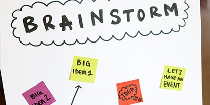 Place the string between the holes on either side of the Post-it® Easel Pad and tie the two ends of the string together. Then, use a marker to label the paper brainstorm. Place your “ideas” from the brainstorm on Post-it® Notes and stick them to the Easel Pad. Then, connect the ideas by drawing arrows with your marker.