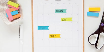 The holiday season is a perfect reminder to reach out to family and friends who you’re not in touch with as often as you’d like. Maybe Aunt Sherry had a tough year and could use an especially nice letter, or maybe that old college roommate hasn’t heard from you in three years. Write reminders on Post-it® Page Markers, stick them on the calendar on days you’re committing to writing the letter, and you’ll have an easy way to ensure you stay in touch with family and friends.