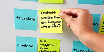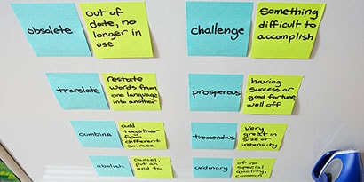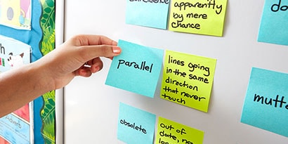 Write a word on a Post-it® Super Sticky Note and its definition on a second note. Repeat until you’ve built a collection of notes containing different words and definitions.
