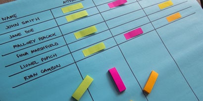 As replies come in, use Post-it® Page Markers to mark any columns that apply. For categories like “attending” or “bringing a guest,” any color will do, but for categories like dietary restrictions or meal choices, you may want to color code the answers – green for vegetarian, blue for vegan and so on.