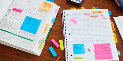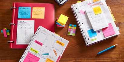 Instead of focusing on just one topic, study various topics during a single session. Jot down thoughts on Post-it® Super Sticky Notes 3 in. x 3 in. to keep ideas close at hand and trade topics every 15 minutes or so. And because the notes are super sticky, you can put them almost anywhere and they’ll stay put — until you need to remove and re-stick them elsewhere, like your notebook. Bonus points for color coding your notes by subject!