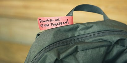 Send reminders home to parents with Post-it® Reminder Tags. Write a quick note like "New practice time tomorrow" or "Bring birth certificate copy for tournament" on the tag, and then loop it around the handles of your players' backpacks, or even around their wrists.