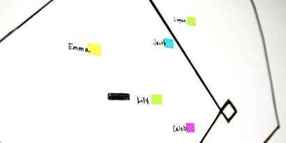 Using a visual tool, like a Post-it® Dry Erase Surface, can be a big help during games and in practices. Draw a basic baseball diamond or soccer field on the surface, and then use Post-it® Flags in different colors to represent players. As you talk about your game strategy with players, this will help them visualize where they need to be during different plays.