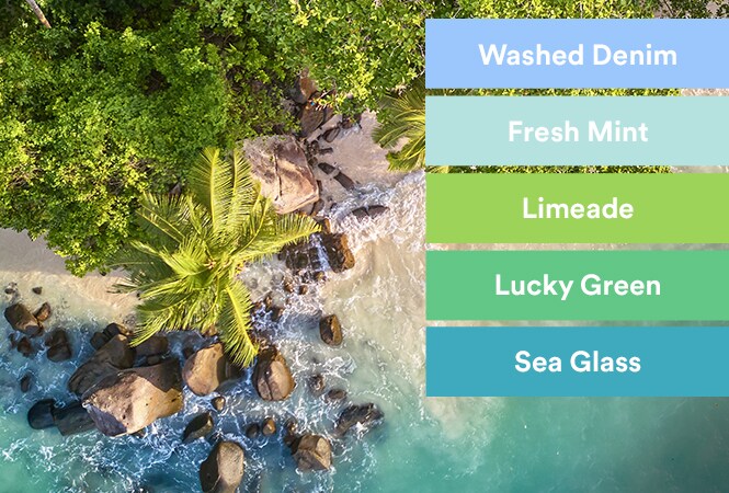 Keep calm and collected with the soothing blues and greens of the Oasis collection.