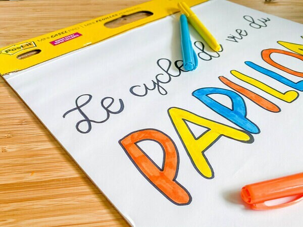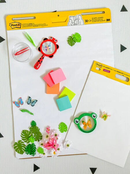 Prenez votre Tableau à feuilles super collantes Post-it® et créez une affiche de référence simple en mettant en évidence les étapes du cycle de vie du papillon. Collez-la au mur derrière votre bac sensoriel pour mettre en évidence les apprentissages et pour encourager le processus d’enquête.