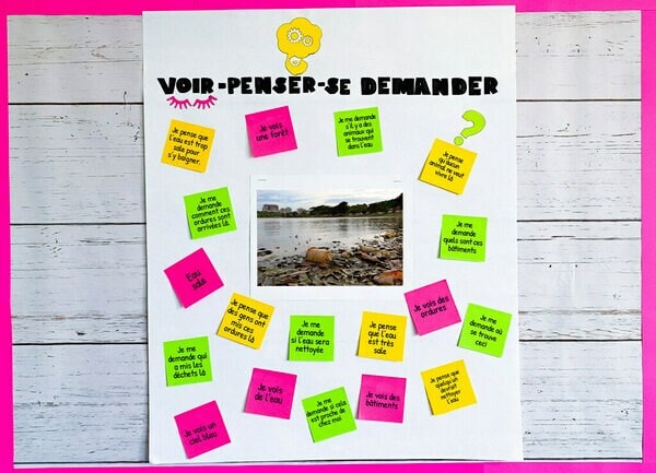 a. Sur les Feuillets super collants Post-it® de couleur rose, les élèves écriront ce qu’ils voient